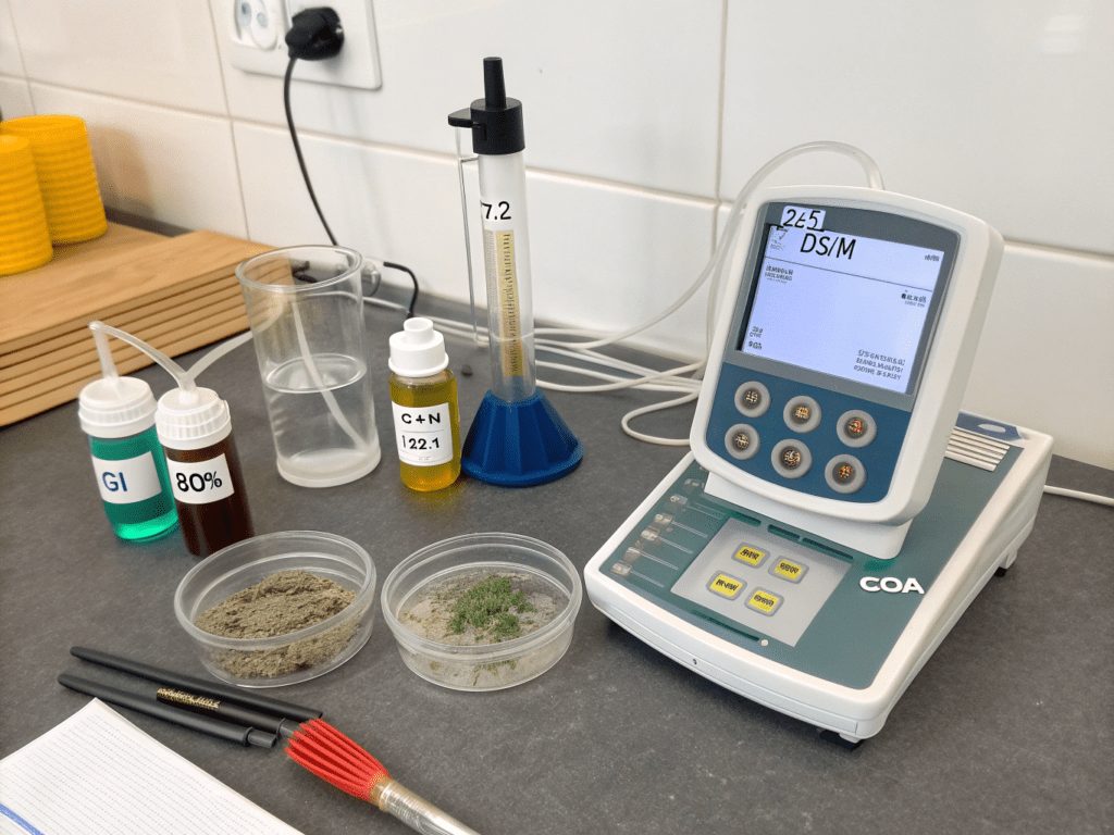 Chemical and biological tests reveal compost stability, nutrient content, and plant safety.